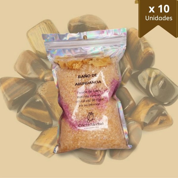 Poder: Empapa tu cuerpo en los beneficios curativos de la rosa amarilla, las flores de caléndula y Manzanilla. Una dulce mezcla de fragancias cítricas para aportar un aroma dulce y cálido a esta sal inspirada en la luz del sol que sale cada mañana. Capacidad magnética para envolvernos con un aura positiva capaz de activar la prosperidad integral. Para atraer riqueza, incorporamos el cristal ojo de tigre para que sea un talismán personal para generar riqueza y buena fortuna.