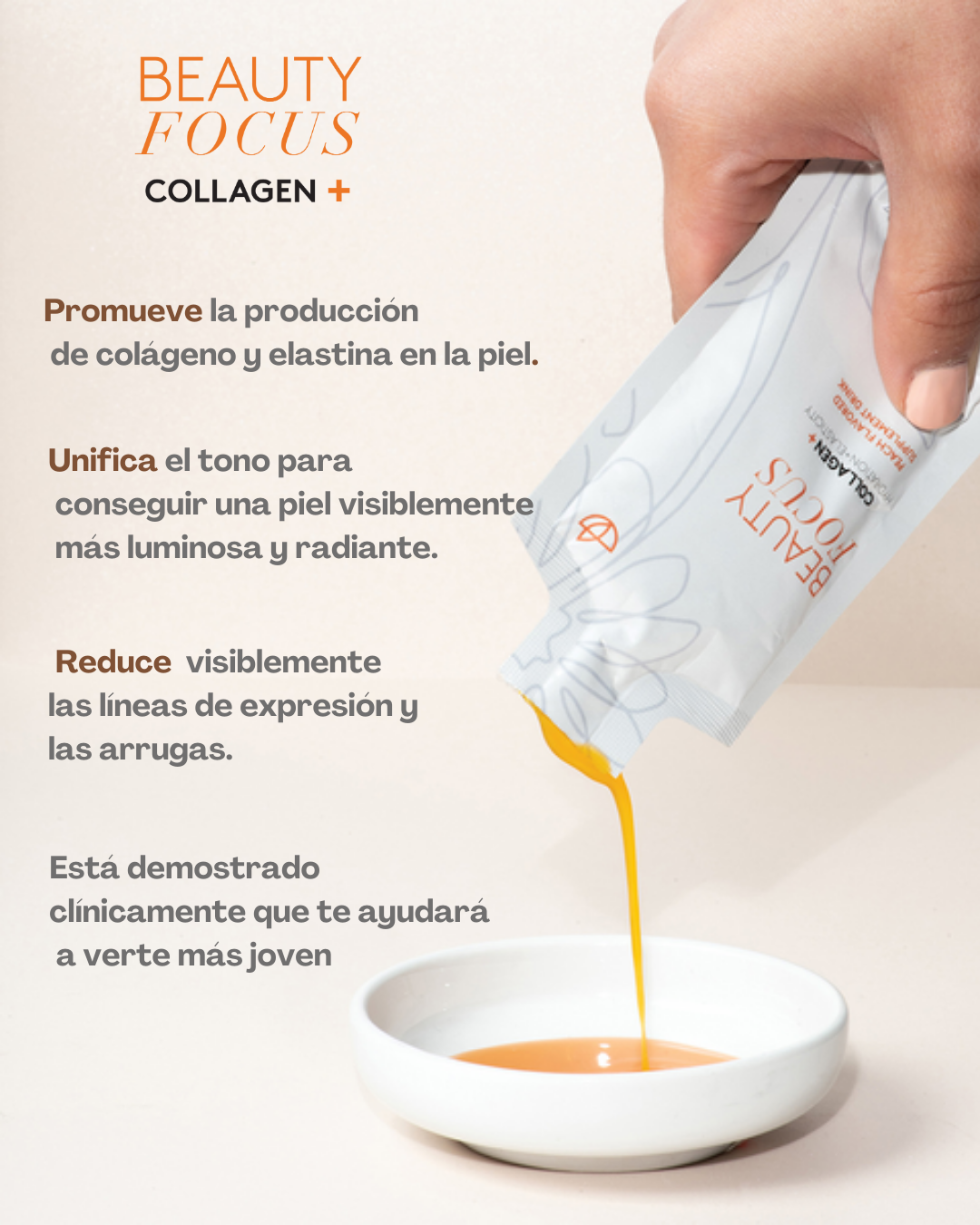 Agrega tu Collagen+ y disfruta de sus increíbles beneficios: te ayudará a mejorar la ingesta de péptidos, ceramidas y luteína, un compuesto que ayuda a complementar la ingesta de pro-vitamina A en tu alimentación diaria. 30 sobres.
